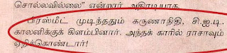 இதே பழனியப்பன் சிதம்பரத்தின் மகன் கார்த்தியை இரண்டு வருடங்களுக்கு முன்பு காத்திருந்து காத்திருந்து கெஞ்சியதையும் அவருக்கு ஆதரவாய் எழுதித் தள்ளியதையும் இப்பொழுது சொல்லிச் சொல்லிச் சிரிக்கிறார்களாம்.மாறன்களை ஏனோ இப்பொழுது கண்டுகொள்வது இல்லையாம்.திரைமறைவில் என்ன நடந்தது என்று தெரியவில்லை.